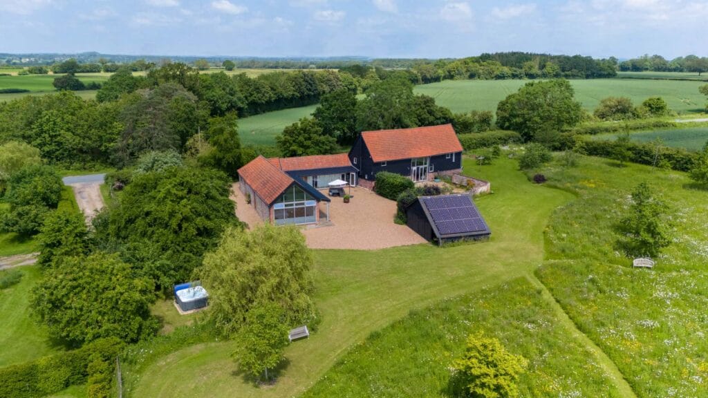 Step outside into quiet — the courtyard at the centre, the horizon stretching wide around you, and space to slow down with birdsong, meadow-grass, and big skies doing the rest.